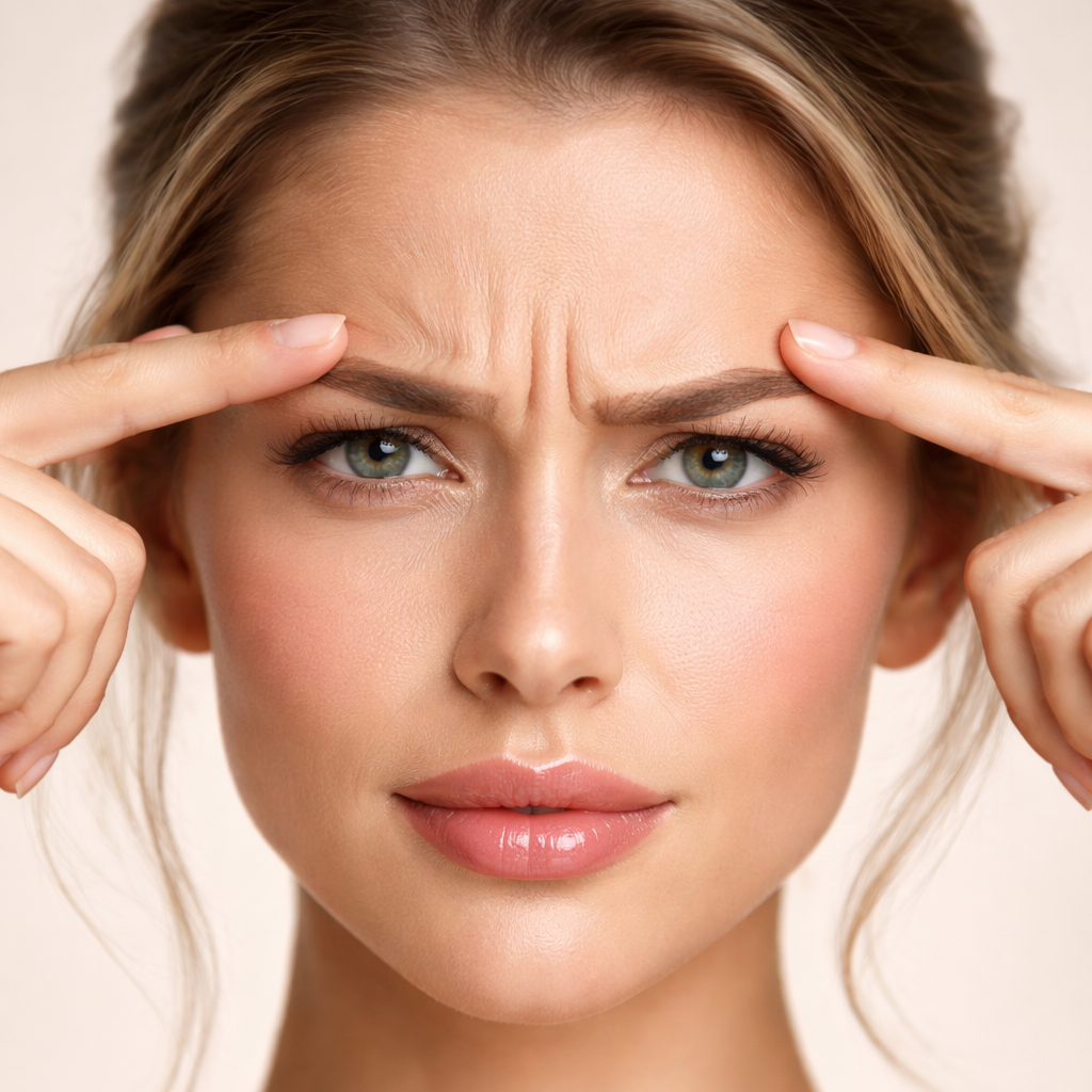 Stirnfalten oder auch "Denkerfalten" sind eine weitere häufige ästhetische Indikation für die Anwendung von Botulinum. Eine Kombinationsbehandlung mit der Zornesfalte ist häufig. Auch können die Beschwerden von Spannungskopfschmerzen nach Anwendung nachlassen.